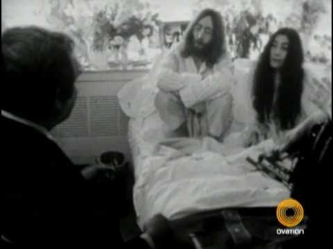 Yoko Ono and John Lennon chose their honey moon to be spent at the Hilton Hotel in Amsterdam while they protested for peace in bed. The project was named "Bed in for Peace" which began on March 25, 1969 and lasted one week, instead of the average honey moon. They invited the press to interview them twelve hours a day, many of the interviews were highly controversial and offensive towards the couple to provoke their movement. Signs were hung in the hotel room which promoted "Hair Peace" and "Bed Peace", they wore appropriate pajamas and decorated the room with flowers creating a peaceful aura.
